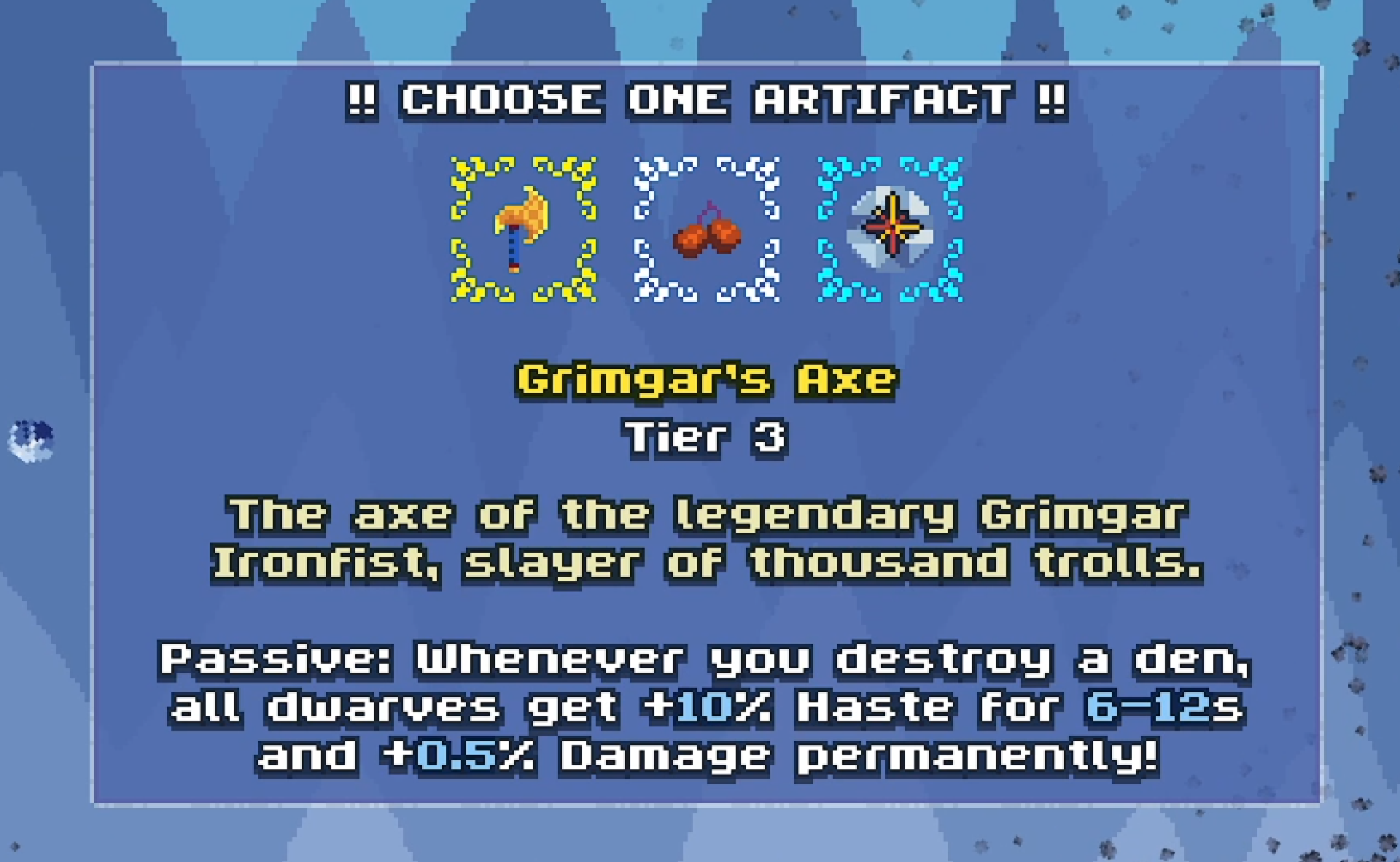 Great game though. Fresh and fun concept and I like the fact that it is an actual idler that doesn't need constant baby sitting (except for the start, and early mid game when you are rapidly farming artifacts)
