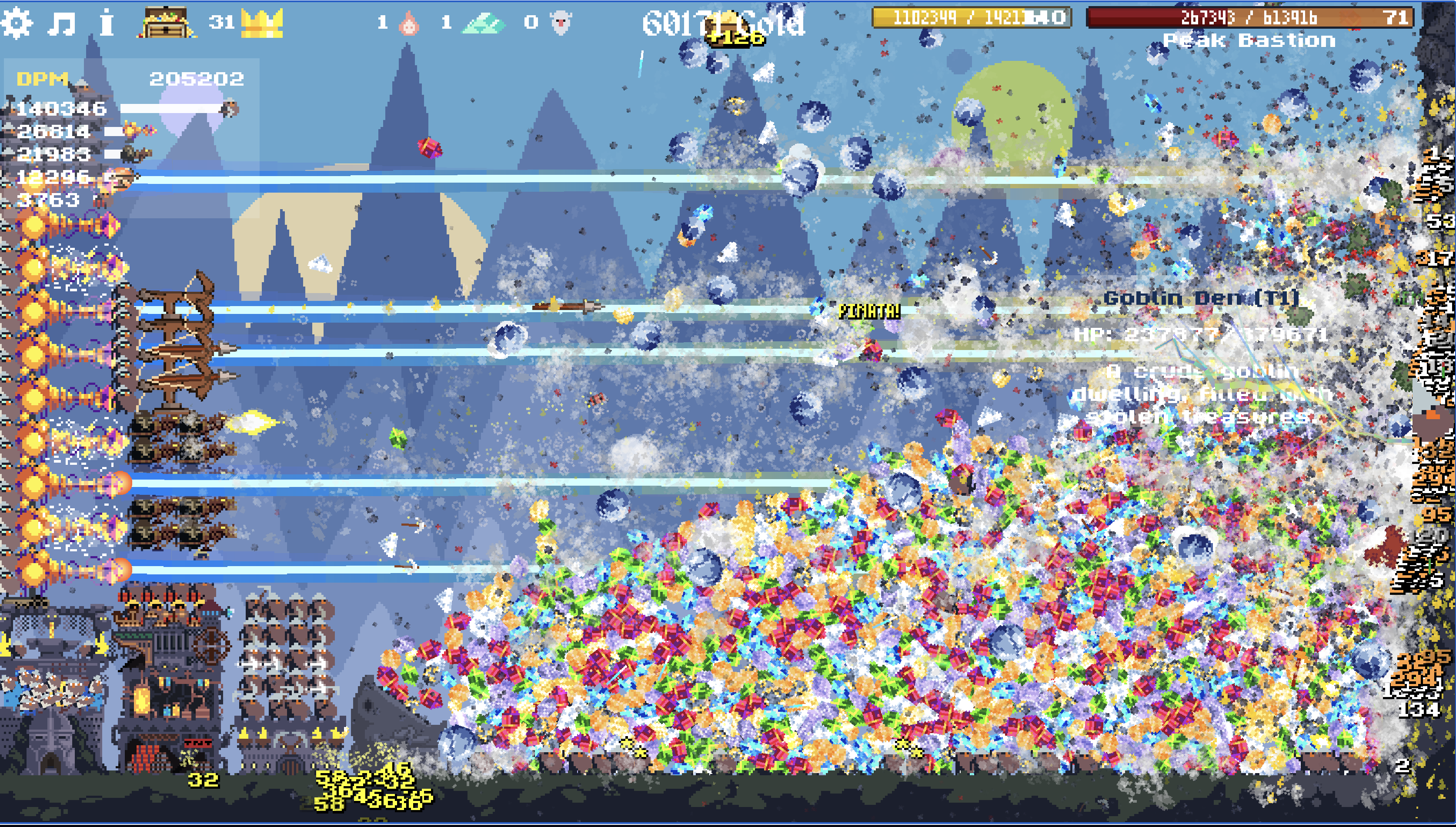 Very entertaining, I hardly sleep at night because I was very into the game. I have a couple of recommendations for the dev, I haven't read comments so I don't know if what I'll post has already been written. Regarding the improvements in general, I think it would be good to specify what is needed to unlock a new improvement, I spent several hours gathering mithril thinking that it was what I was missing to unlock some improvements, but that was not the case, things like That makes the game slightly heavy to play. Regarding the dynamite launching tower, I see it well to alter the improvement that allows you to launch a large bomb by aiming manually (I don't know the name of the improvement itself) I was trying to hit only one against the mountain but it was not possible for me no matter how much I brought it as close as I could. Greetings.